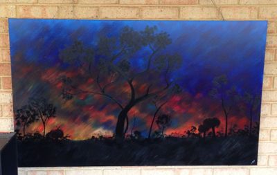 I recently completed this painting on commission after someone saw my smaller canvas on social media. I was asked to recreate that painting with some slight colour changes (more oranges, less yellows) and on a much, much larger canvas! I was alittle nervous to say the least but in the end it turned out great! I decided to add some grass trees to give it a much more Western Australian feel & was pretty happy with how they turned out. To see the pictures of each phase & the comparison in size, check out the story on my blog titled Getting back into oils.